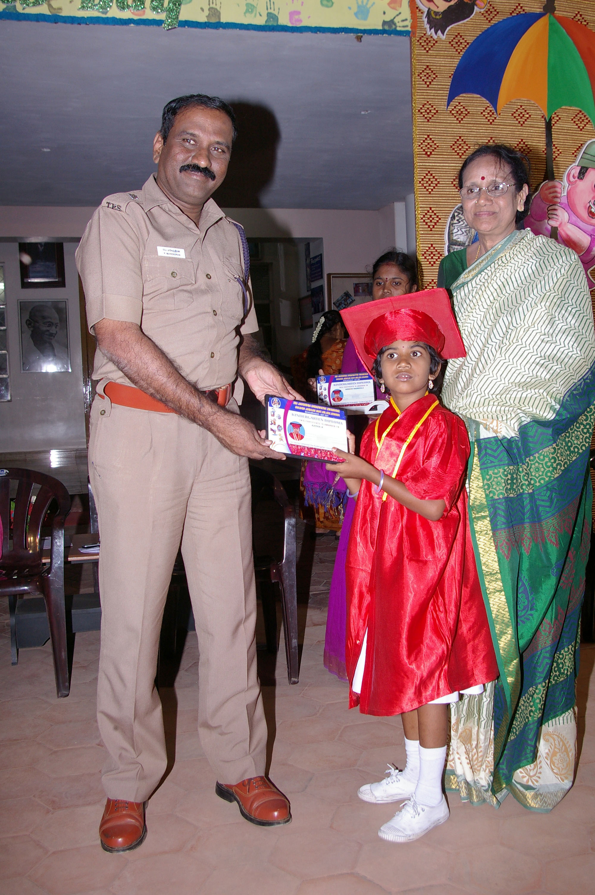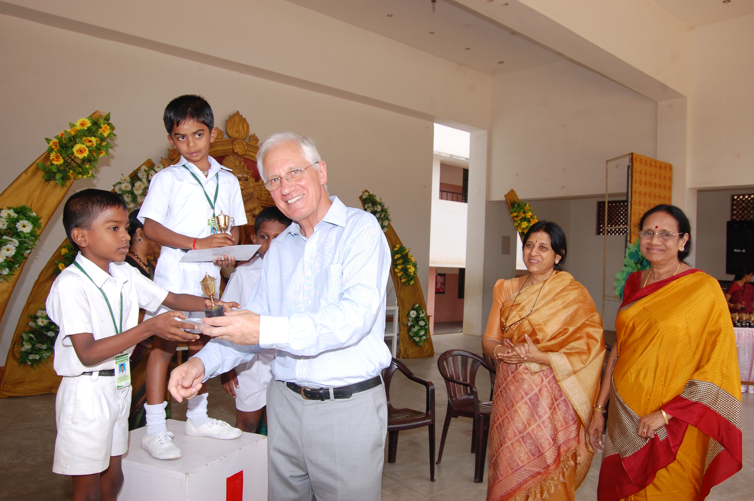 Santhoshi of V Standard gave the welcome address following which there was a musical performance and a graceful dance on the theme of eye donation. The Kindergarten children performed a skit on ‘Saving the Environment’ which was the cynosure of the day! Our Principal Mrs. Usha Raman then gave the Annual Report outlining what has been achieved this year.