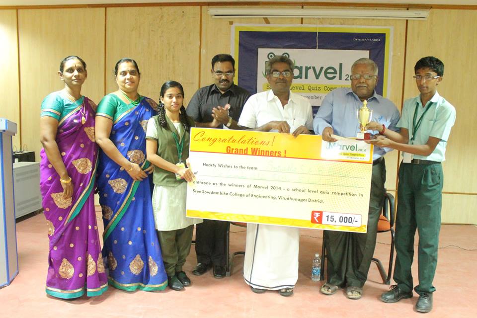 Sowdambika College of Engineering, Aruppukottai conducted a quiz competition for school students on November 7, 2014 in their college. The preliminary and Screening tests were conducted in the districts of Tuticorin, Tirunelveli and Madurai 2 weeks prior to this. Four teams with top scores from each district were qualified to take part in the Final round.