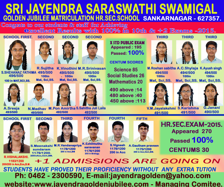 Sri Jayendra Saraswathi Swamigal Golden Jubilee Matriculation Higher Secondary School, Sankarnagar, Tirunelveli District