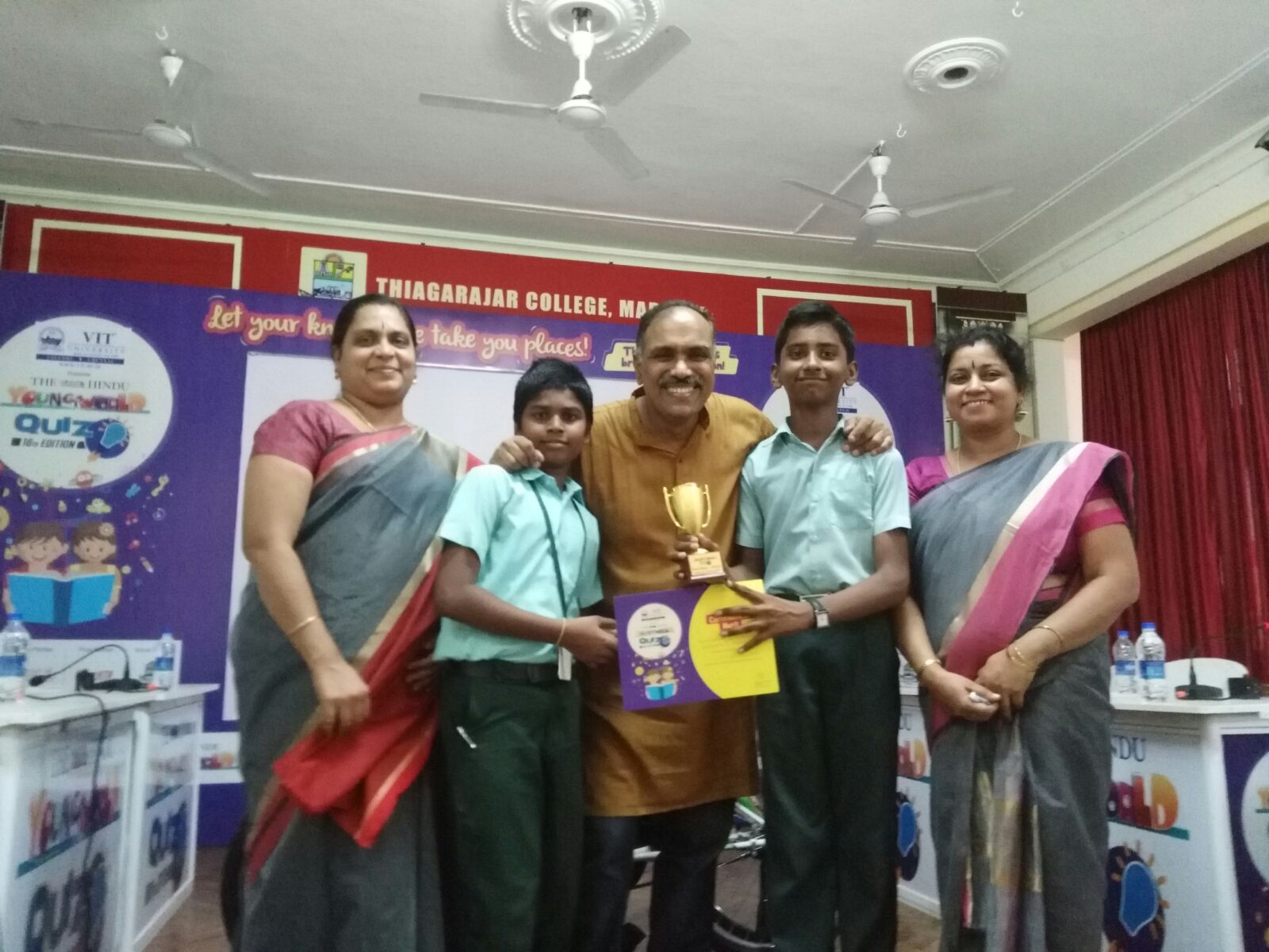 Our students, the winners of the prestigious the Hindu Young World Quiz, with the Chiefguest Mr. Srinivasa Moorthy, the Inspector of Matriculation Schools.