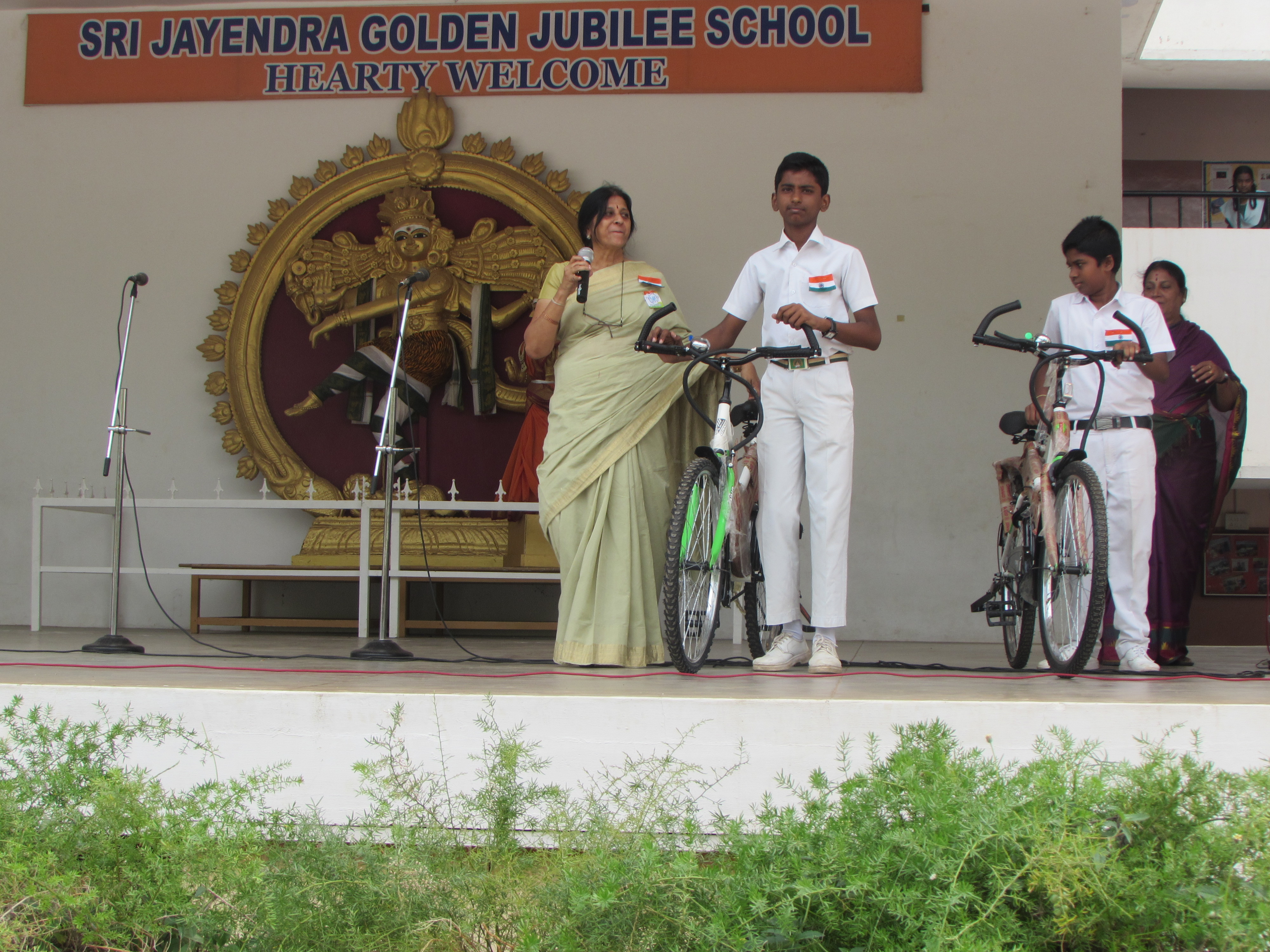 The Prizes were distributed by P. Srinivasamurthy, Inspector of Matriculation Schools: our two winners each received a Fire Fox bicycle.