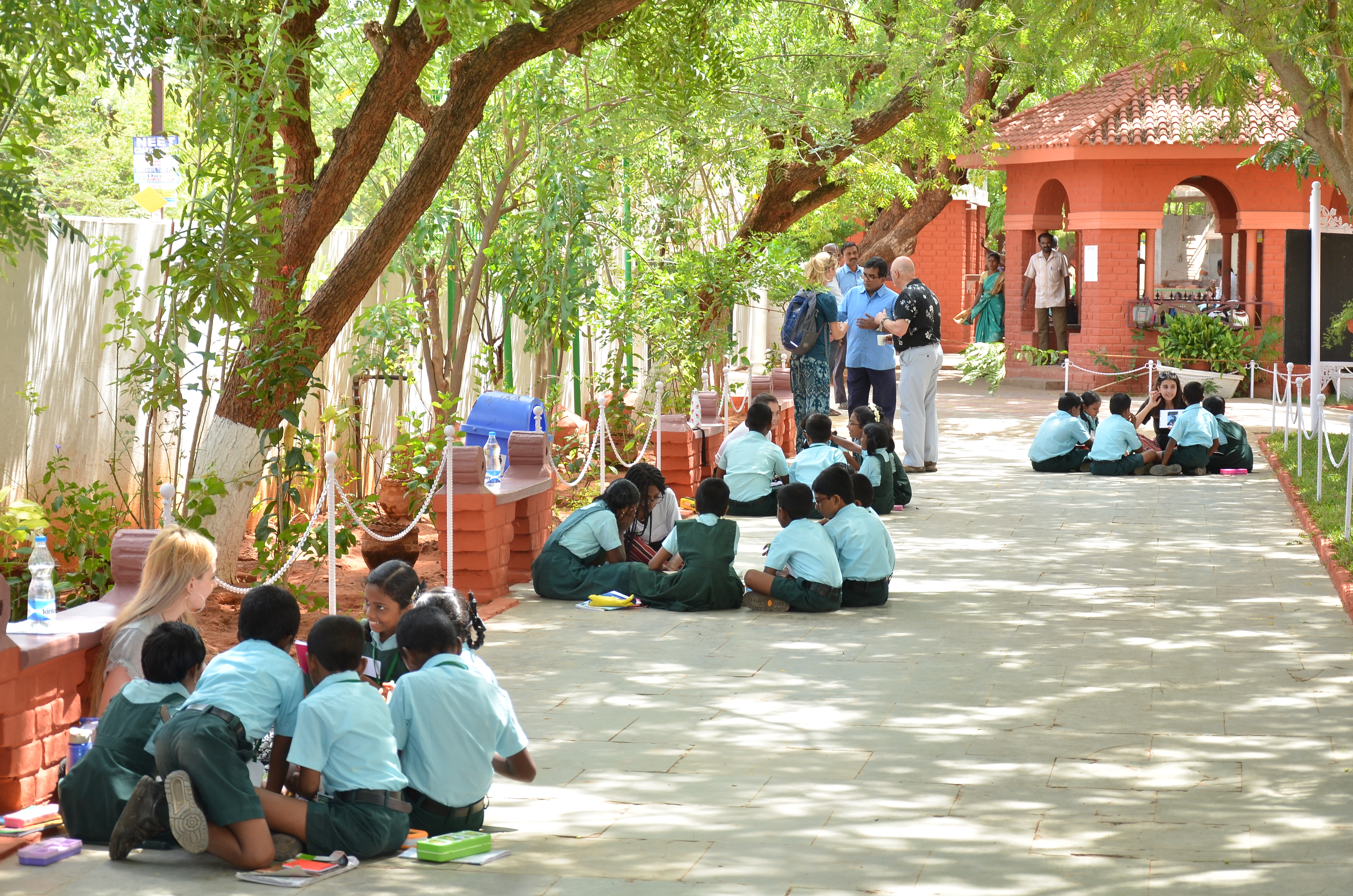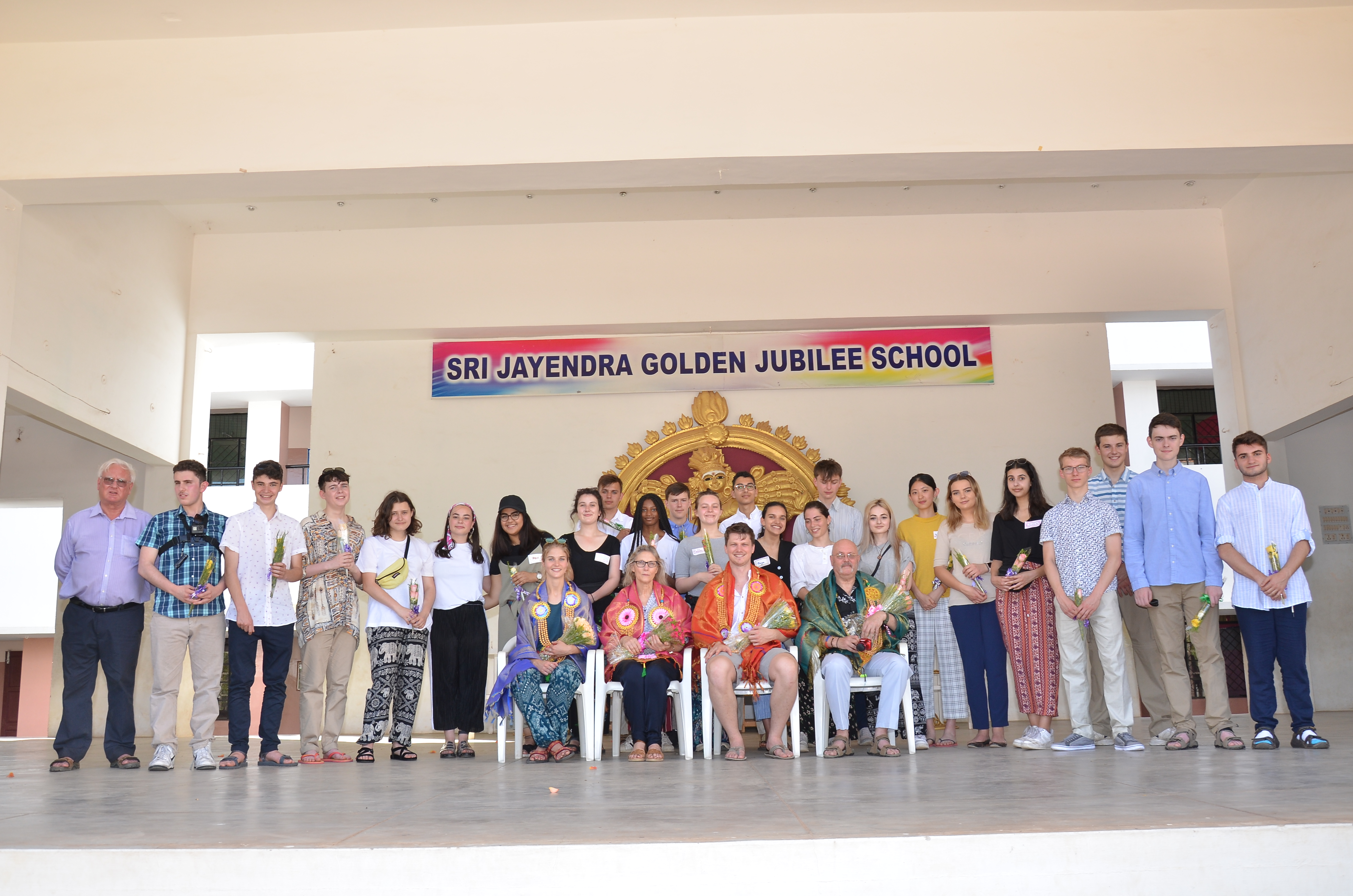 Since 2000, the year of the blooming of the partnership between Sri Jayendra and Mill Hill School, London, the visit of Millhillians in the month of June to our school gives an amazing start to every academic year. On 25th of June a group of 23 students guided by 4 staff Ms. Sanchez, The Deputy Head of Mill Hill School, London, Mr.Steve, Ms.Hanna and Mr. Fritz. reached Sankarnagar. Our children and staff gave overwhelming welcome to all of them in the morning assembly welcoming and wishing them a good stay with an English song by our school choir.