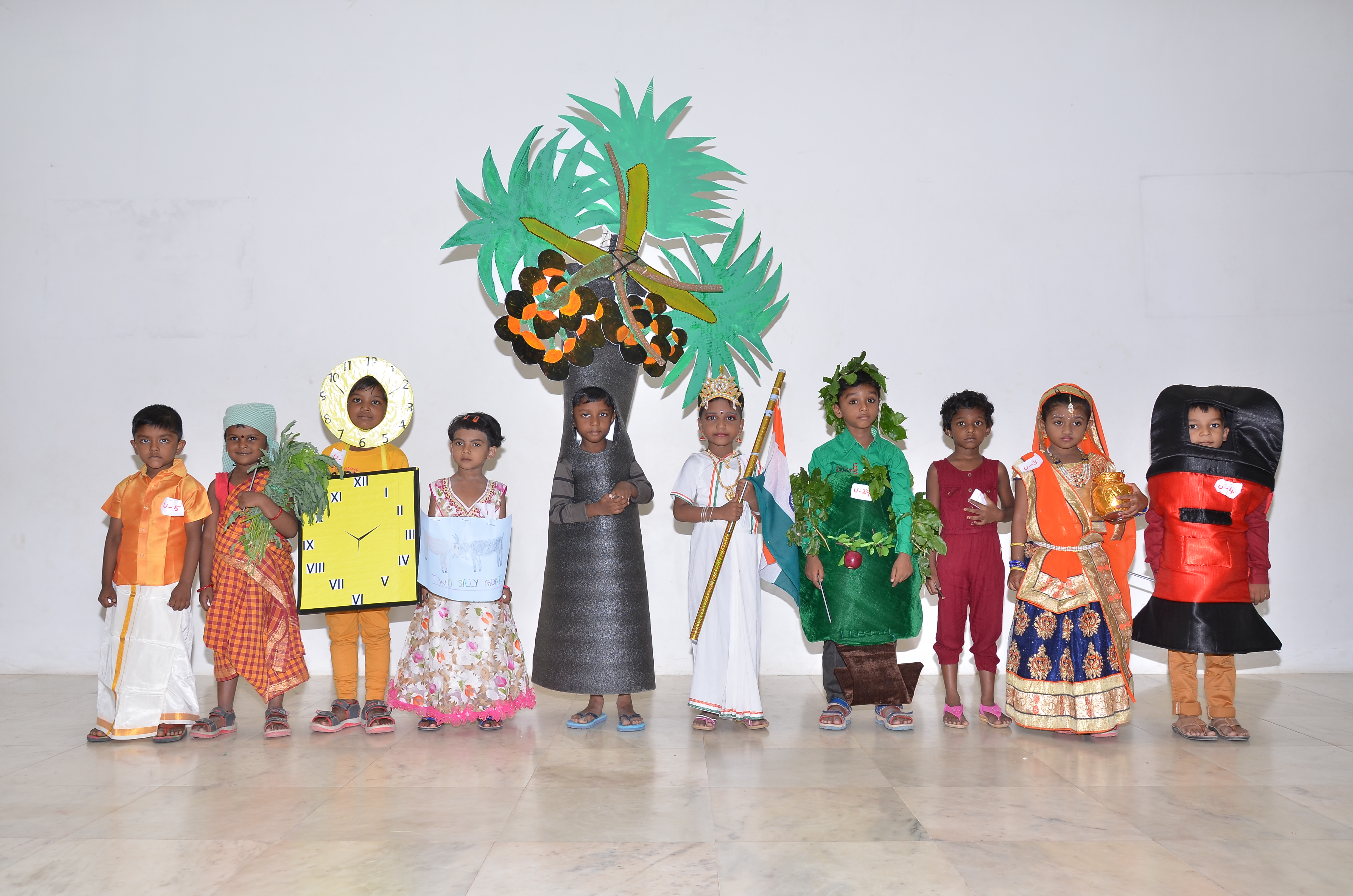On 25th August the Kindergarten department conducted a Fancy Dress competition for the tiny tots. From 9 am onwards Parents with their dressed up children started assembling in the Priory Hall. The parents were as excited as the children. The Lower Kindergarten children were dressed like flowers, vegetables, fruits or animals, whereas the UKG had many novel ideas such as Palm trees or Maggi Noodles.