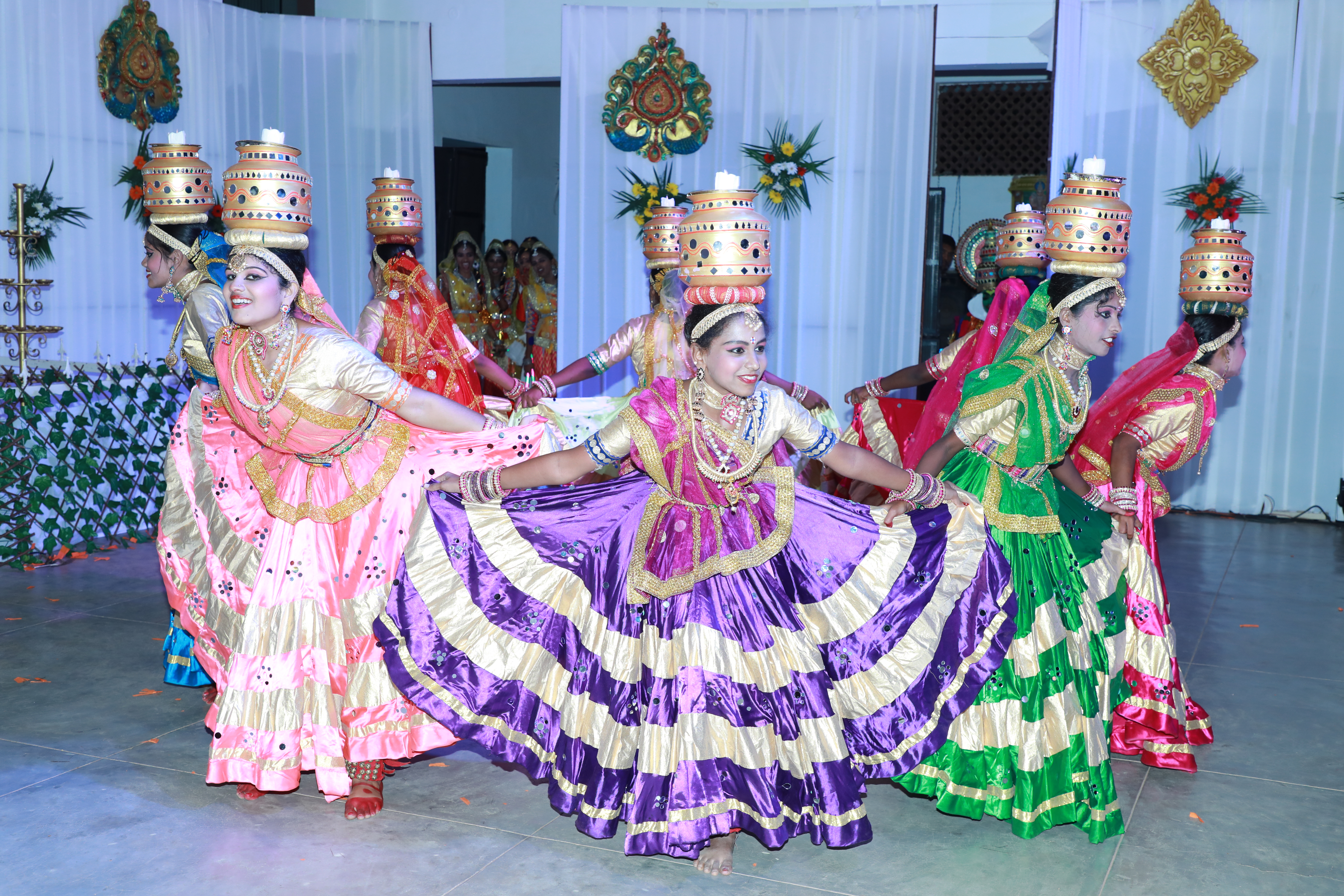 The highlight of the function was the phenomenal dance performance by our students. The alumnae too joined the performance. The folk dances of different states of India like Sapla, Garba, Ahir, Gagar and Classical dances like Bharatnatyam, Kathakali etc., were performed professionally by our students with extraordinary skill and it was spectacular!!The highlight is the the whole dance series was our own master piece including the music and props.