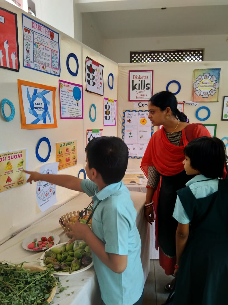 ‘Eating right is an important concept’ stressed by our school students through a mega display of food pyramid on the occasion of world diabetes day with the guidance of Biology Department.