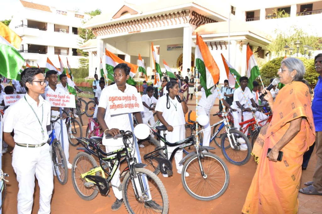 On the occasion of the 75 years of Indian Independence , a cycle rally was organized by our school students to create awareness against drug abuse.