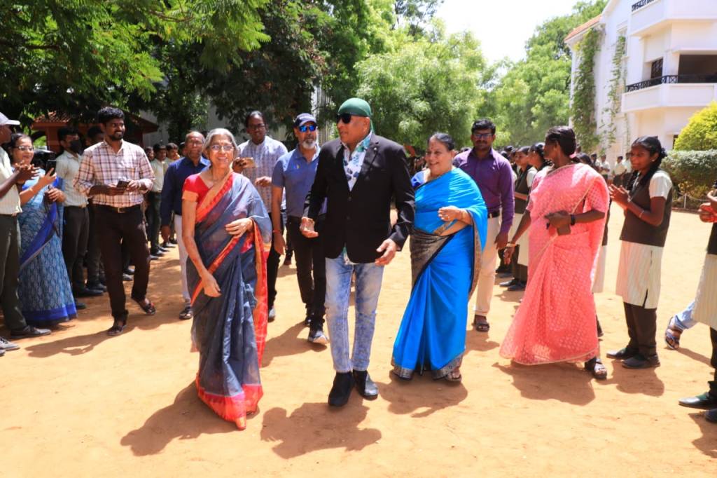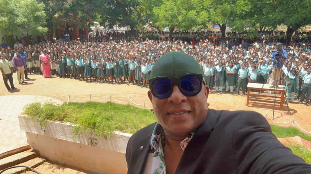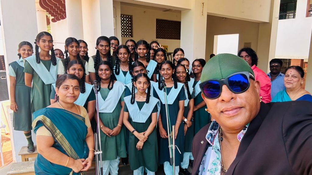 Our principal Mrs.Usha Raman took the stage to express heartfelt gratitude to Drums Sivamani for gracing our school with his presence. The principal also highlighted the importance of such visits in nurturing the students’ passion for music and inspiring them to pursue their own artistic endeavors.