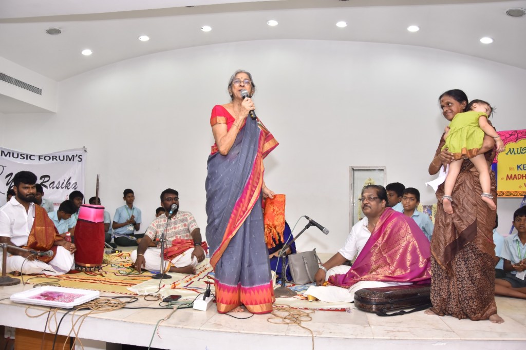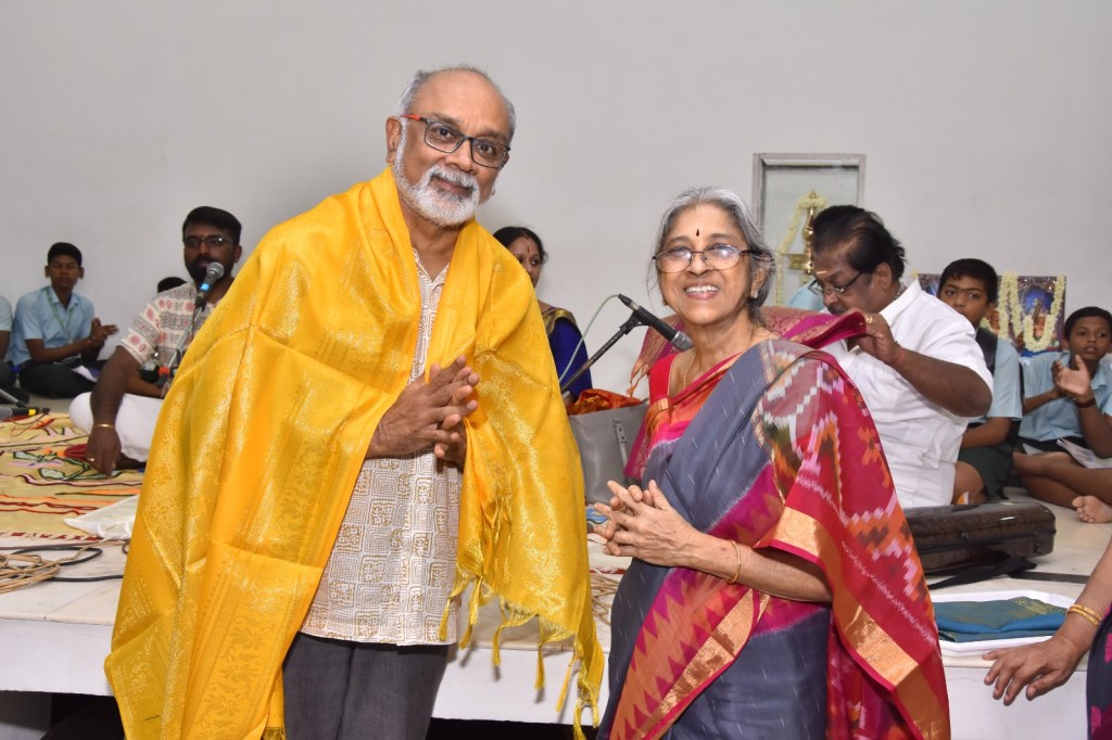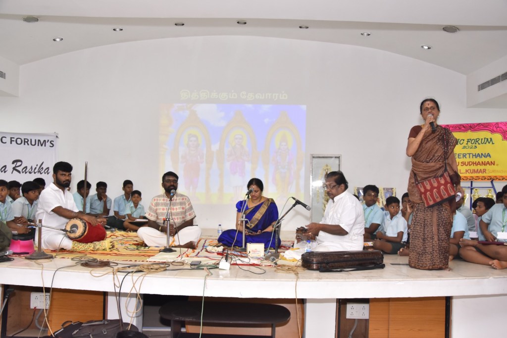 An interactive workshop on Carnatic music, organized exclusively for school and college students was held on July 29, Saturday in our school. This event featured esteemed members of Music Forum, Chennai, including Mrs. Keerthana who presented songs for the explanation of Thevaram by Prof. Madhusudhanan Kalaichelvan accompanied by violinist Mr. VL Kumar and Mirdangam artist Mr.Swaminathan. The demonstration on the topic “How to Appreciate and Understand Our Great Music” focusing on “Thevaram Moovar and Their Hymns,” was very fascinating and informative.