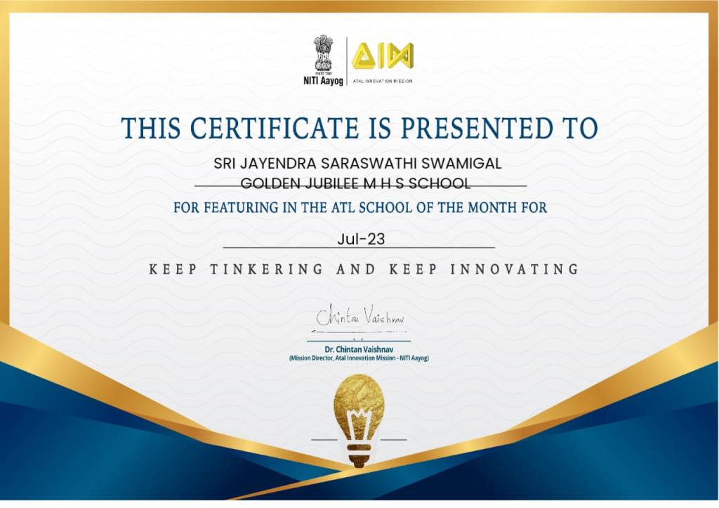 We are thrilled to announce that our school has been selected as the “ATL School of the Month” by Atal Innovation Mission (AIM). This recognition highlights our dedication to fostering innovation, creativity, and hands-on learning for our students. The ATL School of the Month initiative acknowledges exceptional efforts within the ATL Community, and we are honored to have stood out. We extend our gratitude to AIM for this recognition and the commemorative certificate. This achievement encourages us to continue our commitment to providing outstanding educational experiences.