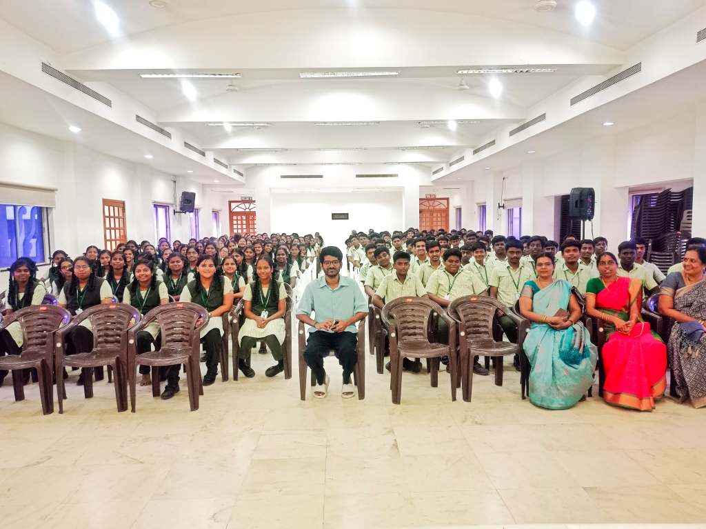 On August 10th, our school had the privilege of welcoming an extraordinary guest, the renowned Tamil film music director, Nivas K Prasanna, our proud alumni. Known for his sensational contributions to the music industry, Nivas captivated the hearts of our students from classes 10 and 11 as he took them down memory lane, sharing interesting anecdotes from his own school days.